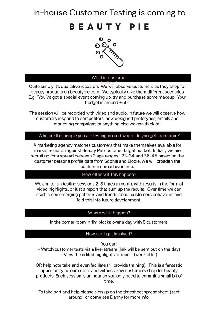 Beauty Pie, at the time a one-year-old disruptive start-up in the beauty sector had experienced amazing growth. They had a membership model that gave members access to non-branded lower cost, high-quality beauty products. They’d had an early surge in new memberships on launch and were now looking to grow this to a much wider market. While they had an initial uplift of new users, these were mostly early adopters. The brand was now struggling to convert to a wider audience of newer customers.